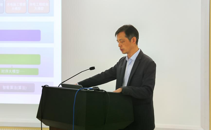 赵建世代表项目组对项目的研究背景、研究目标、研究内容与预期成果进行汇报。项目组成员清华大学计算机系教授许斌、清华大学地学系教授卢麾、国能数智科技大数据服务公司副总经理罗玮、北京智谱华章科技有限公司冯小平等就相关内容进行补充说明。