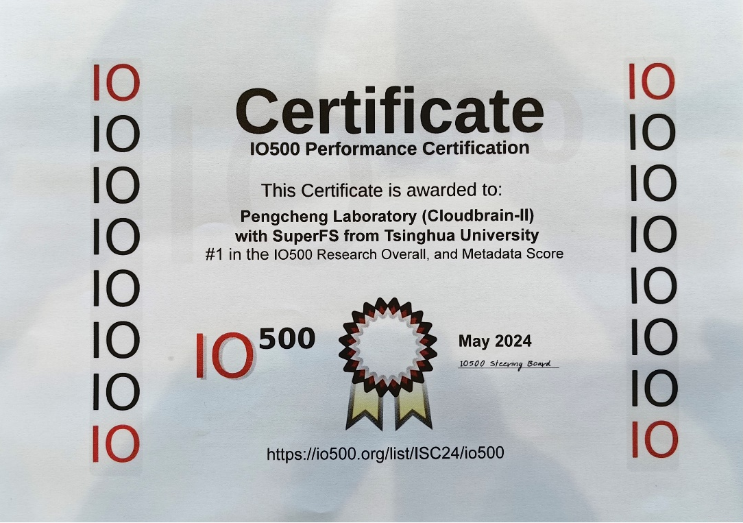 清华新闻网5月24日电 5月15日,国际超级计算大会(ISC24)发布新一期国际超算存储500强(IO500)榜单,清华大学计算机系存储实验室凭借其自主研发的高性能文件系统SuperFS在“鹏城云脑II”上的出色应用,再一次夺得IO500榜单全球第一。参与该工作的核心成员包括计算机系副教授陆游游、教授舒继武,以及博士生曾少勋、郭昊、杨倚天等。该成果得到计算机系高性能所郑纬民院士、陈文光教授以及鹏城实验室的精心指导和大力支持。