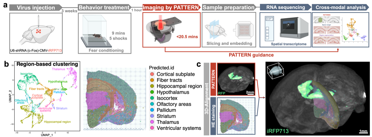 图2.基于PATTERN的全脑三维荧光成像与空间转录组联合分析
