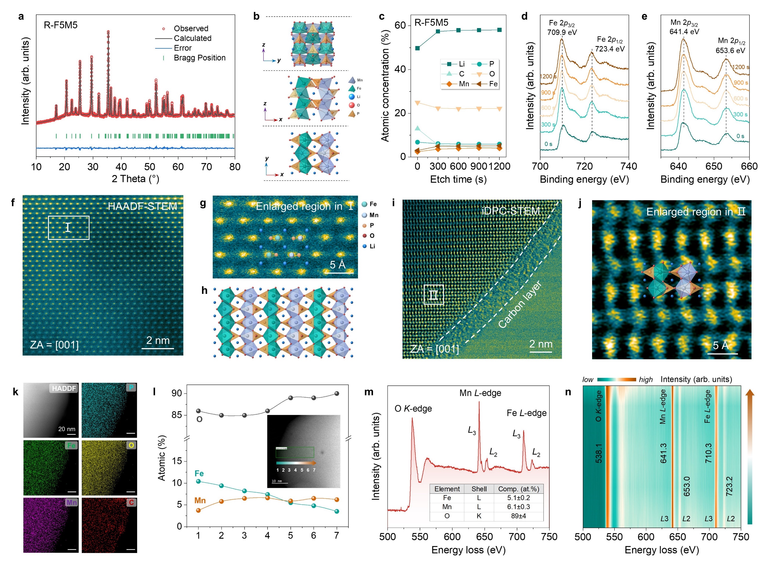 图2.再生的磷酸锰铁锂正极材料的结构表征