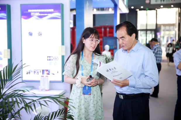 中国发明协会党委书记余华荣现场观看清华大学参展成果