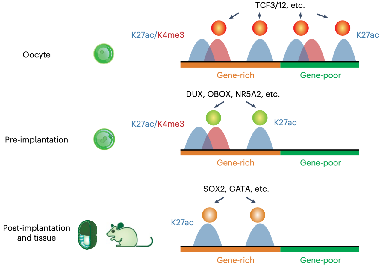 图.活跃增强子在卵子和早期胚胎中的分布示意图