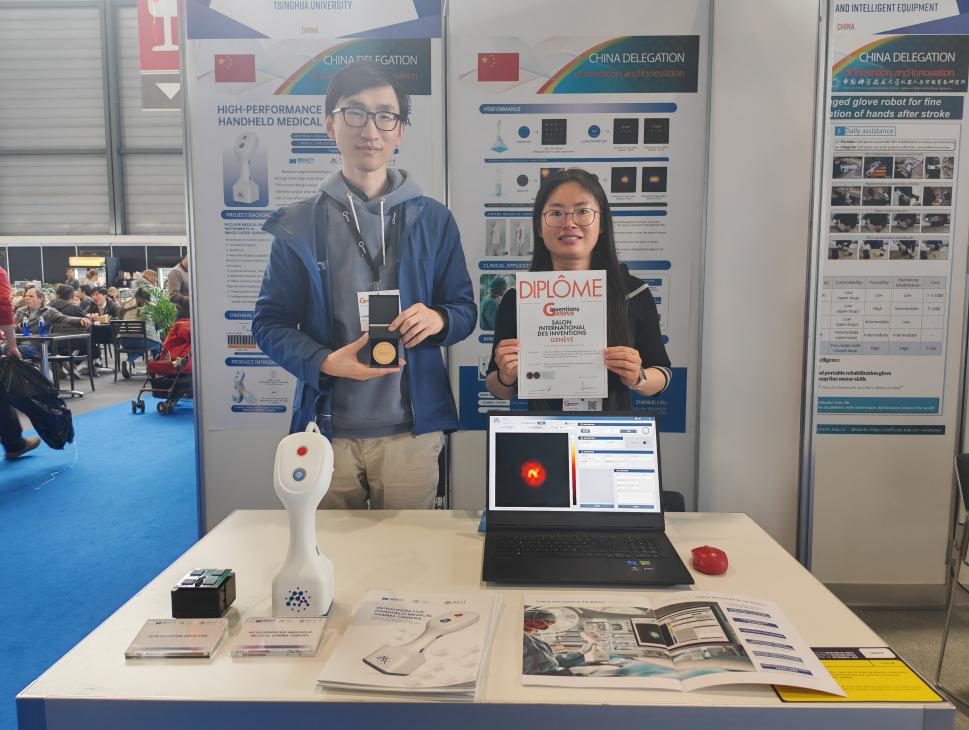 工程物理系马天予副教授团队参展的“基于自准直技术的术中手持式医用伽马相机”项目荣获大会备受瞩目的“沙特阿拉伯代表团奖”(PRIZE OF THE SAUDI ARABIAN DELEGATION)、大会冠名的杰出创新奖(Outstanding Invention Award)与金奖(Gold Medal)。该项目独创地实现了从大型设备到便携式掌上相机的技术突破。其核心在于采用了基于自主专利技术的三维稀疏阵列“魔方”式探测器,摆脱了传统伽马影像设备中笨重且低效的铅制重金属准直器部件,使得设备的体积和重量大幅度降低、而成像速度大幅度提升。手持式医用伽马相机整机总重不足1公斤,能够在1秒内对生物体内示踪剂的动态分布进行成像。该相机的成功研发使核医学影像技术从传统安装大型设备的影像科室走入手术科室床旁,由术者手持实现高清、实时分子影像导航,对提高手术成功率、减少并发症有重要意义。