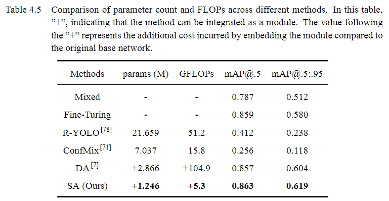 表1.不同目标域上的模型泛化性验证。表中“+”表示该方法可以作为一个可插入模块进行集成。“+”后面的值表示与原始基础网络相比,嵌入模块所产生的额外成本