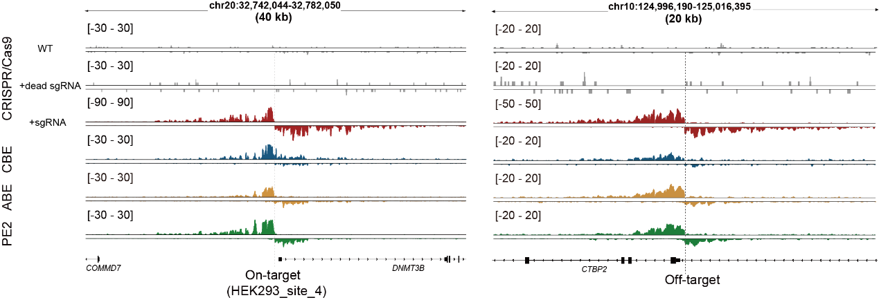 图2.Tracking-seq检测不同编辑工具的链特异性信号