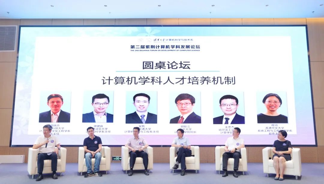 本次论坛还分设两场圆桌论坛。上午举行的“计算机学科评价机制探索”专题研讨,由吴建平院士主持。张艳宁、冯丹、吴枫、周晓方、周建涛共同讨论了新时代计算机学科评价如何根据学科发展进行完善,学科交叉和学科评价的关系,国际化大环境对学科评价的影响,以及学科评价指标与青年人才培养之间的关系等问题。