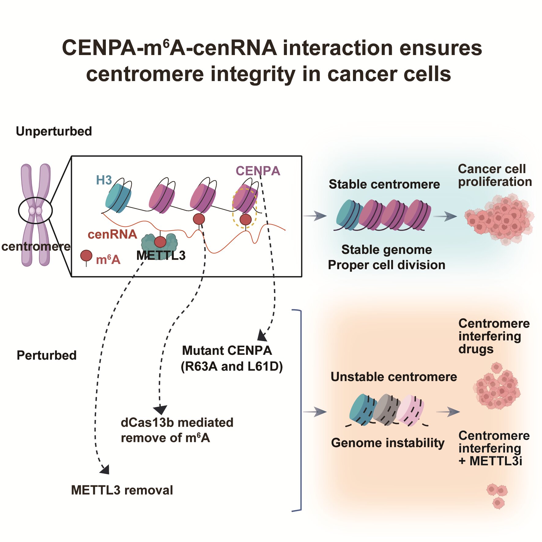 图1. CENPA-m6A-cenRNA调控着丝粒稳态和肿瘤耐药性