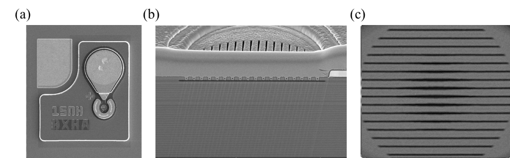 研究团队对加工完成的 chirped HCM VCSEL结构进行了深入的结构分析(图2)。芯片的扫描电镜(SEM)图像验证了设计的可行性和工艺的均匀稳定性。该技术后续将导入批量生产。