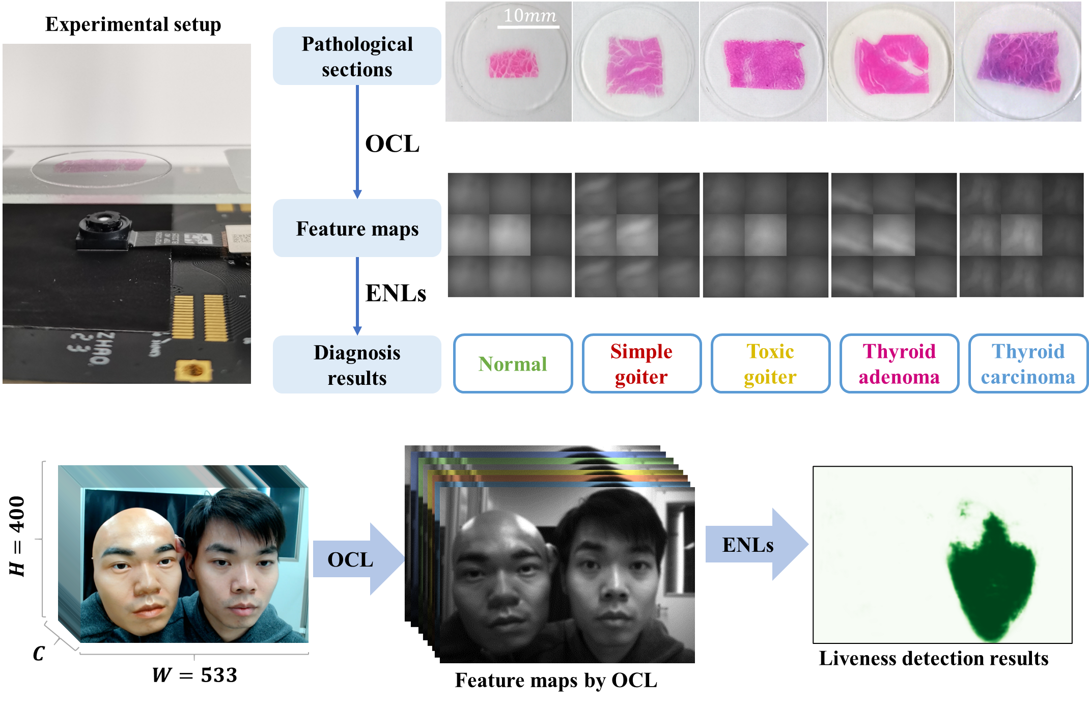 图3.用同一个物谱芯片实现了病理诊断和人脸鉴伪两个完全不同的现实世界复杂任务