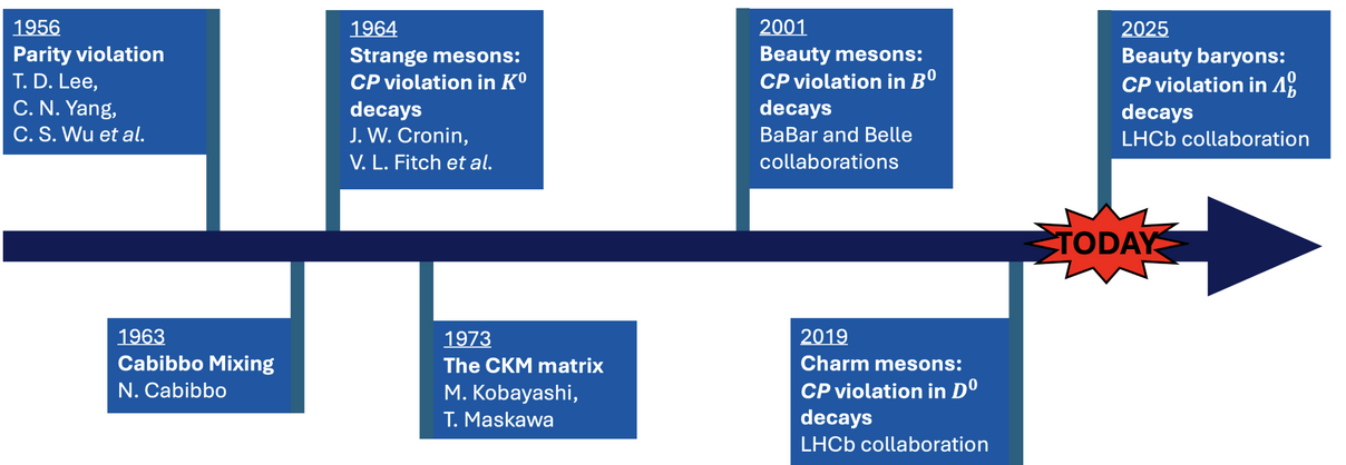 图2.粒子物理研究史中与CP破坏有关的里程碑