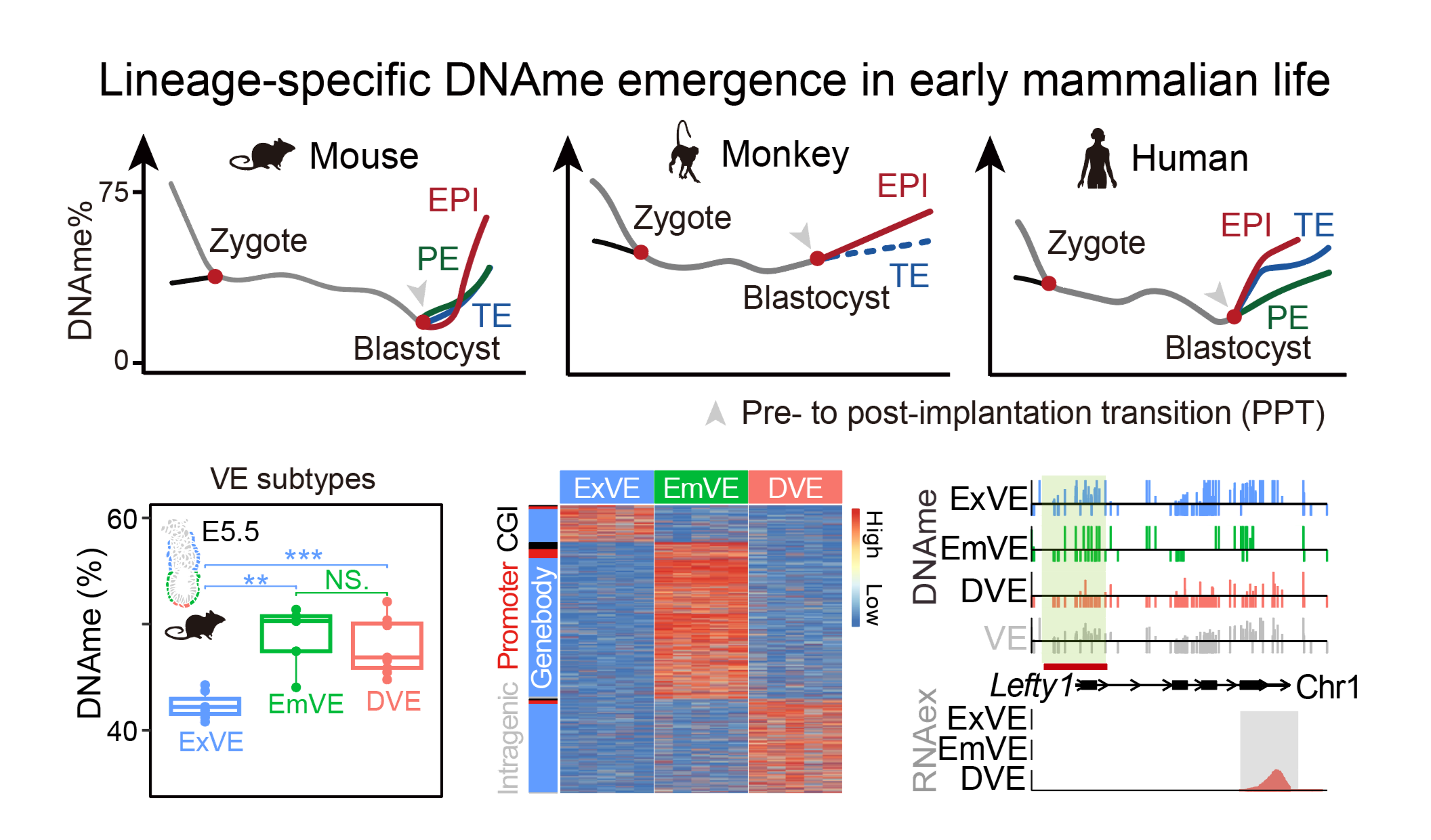图1.哺乳动物早期谱系特异性DNAme的出现