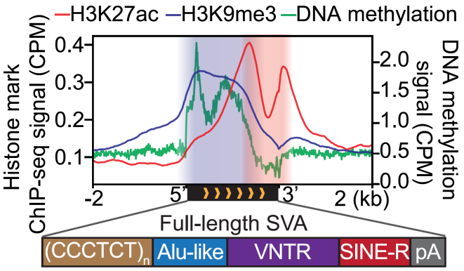 图1.二价染色质富集在复合型转座子SVA上