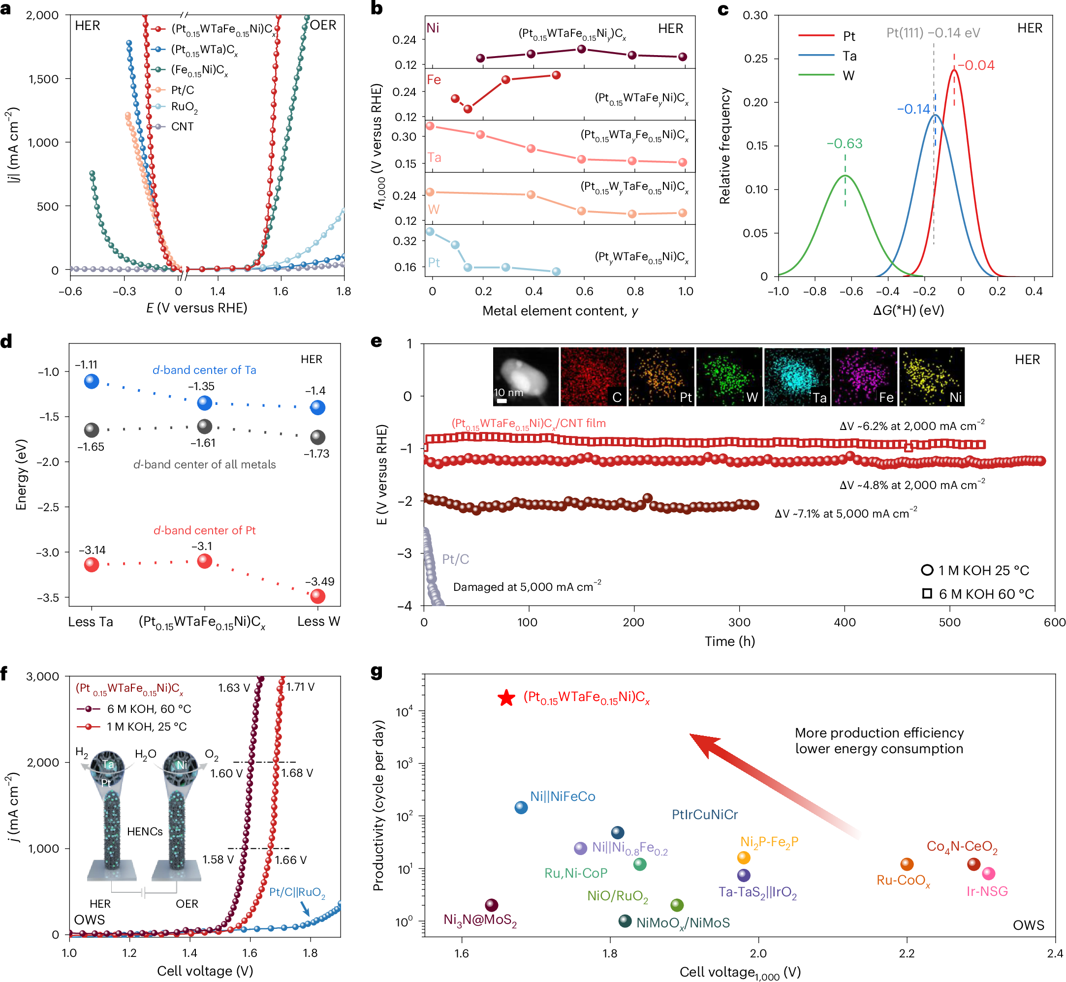 图2.(Pt0.15WTaFe0.15Ni)Cx的电解水催化研究