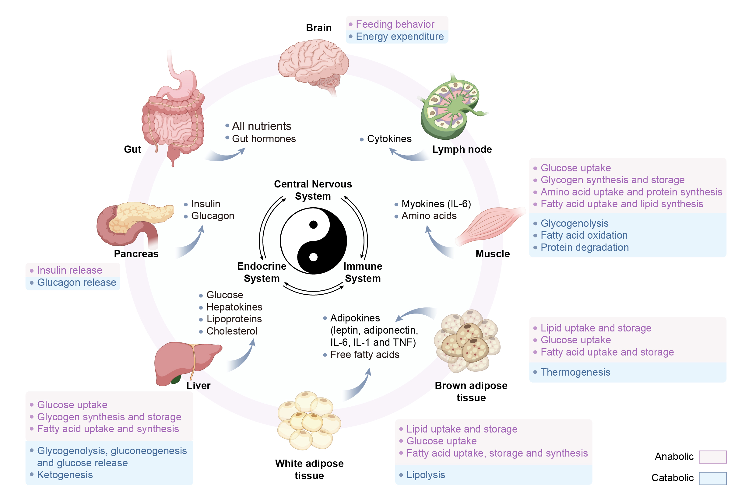 不同组织和器官在神经内分泌免疫稳态和代谢调节中的作用