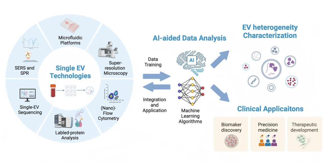 尽管技术快速进步,但是该领域仍面临检测通量、数据整合等方面的挑战。未来,需要加强跨学科协作,建立统一技术规范,并推进多模态技术与AI模型的整合,以加速单细胞外囊泡分析从技术平台向临床工具的转变。