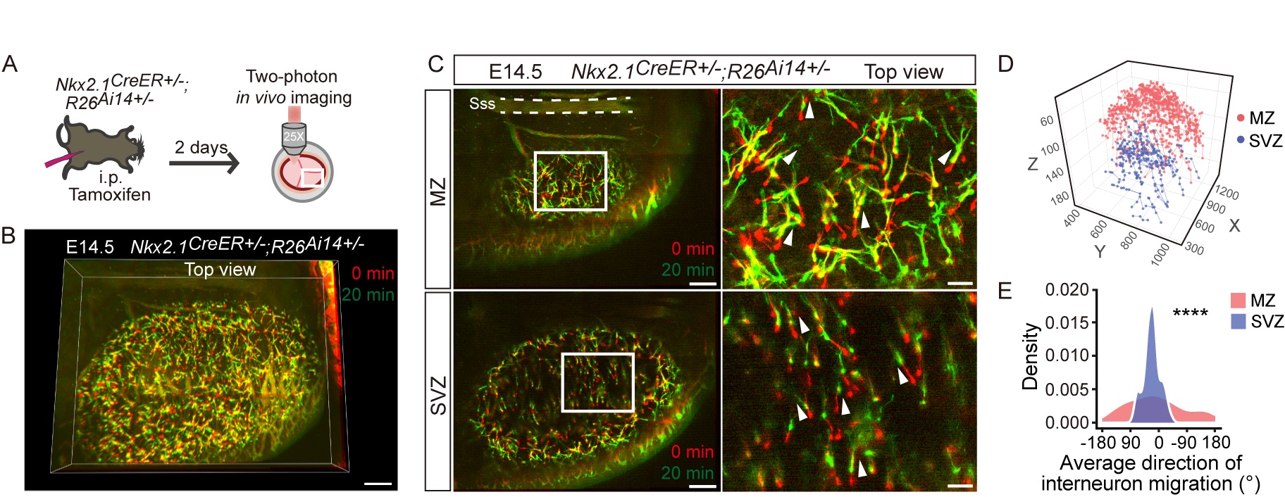 图2.胚胎小鼠大脑皮层内抑制性神经元的切向迁移