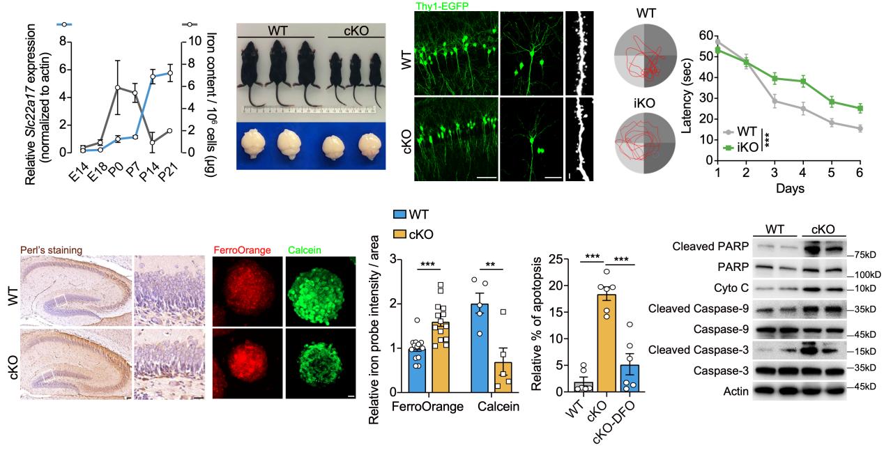 研究成果以“SLC22A17基因通过维持海马区铁稳态调控出生后神经发生”(Slc22a17 governs postnatal neurogenesis by maintaining the iron homeostasis in hippocampus)为题,于12月15日发表于《自然·通讯》(Nature Communications)。