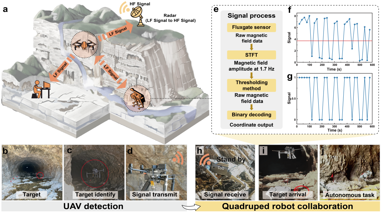 图2.无人机和四足机器人通过低频通信在洞穴中协同作业