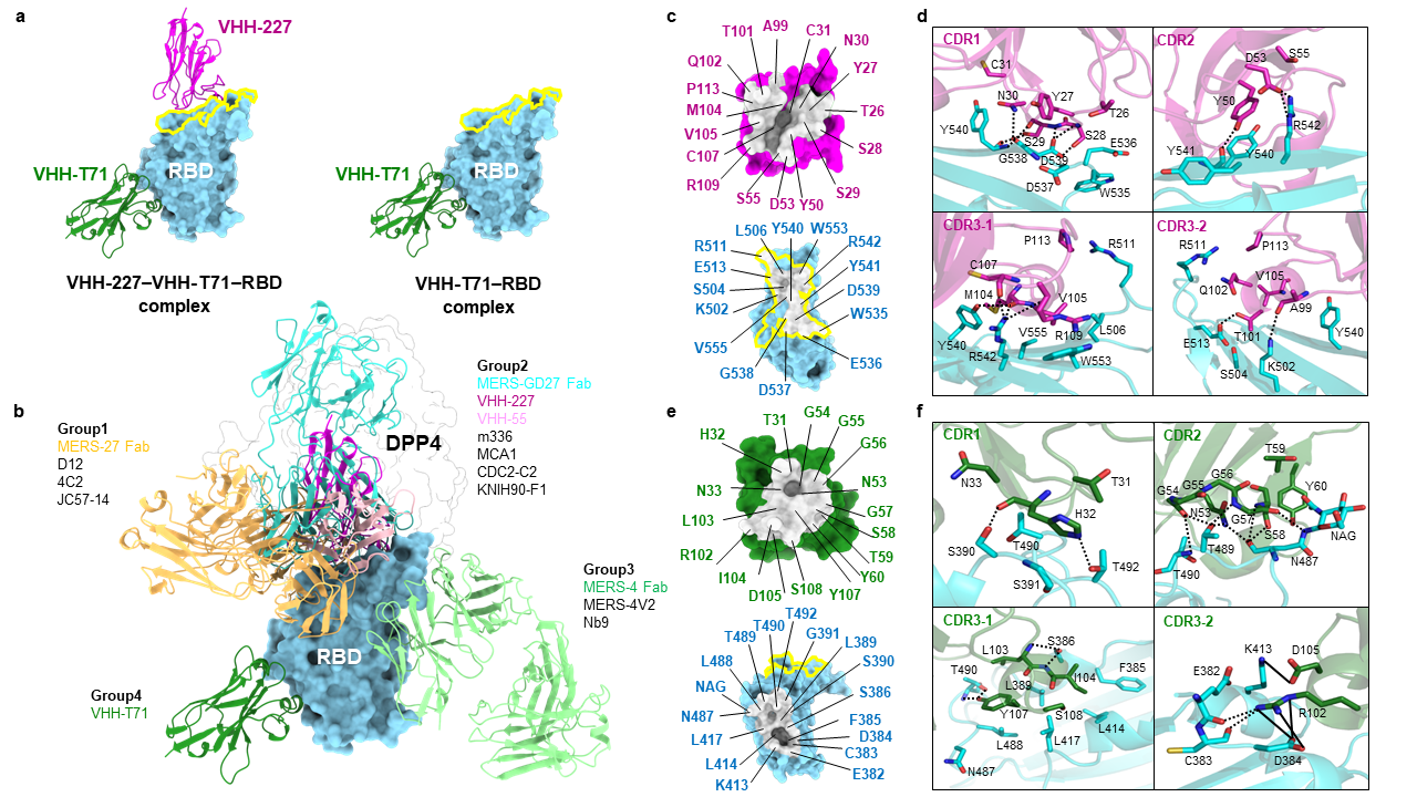 图1. VHH-227和VHH-T71与MERS-CoVRBD复合物结构解析