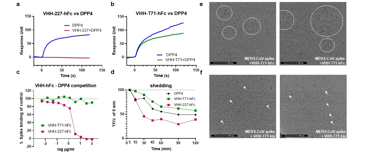 本研究发现的新型纳米抗体为MERS-CoV防治药物研发提供了极具潜力的候选分子,同时也为解析单峰驼抗MERS-CoV的天然抗体免疫水平、遗传和功能特点、理解冠状病毒的跨物种传播和抗体保护机制提供了重要的依据和参考。