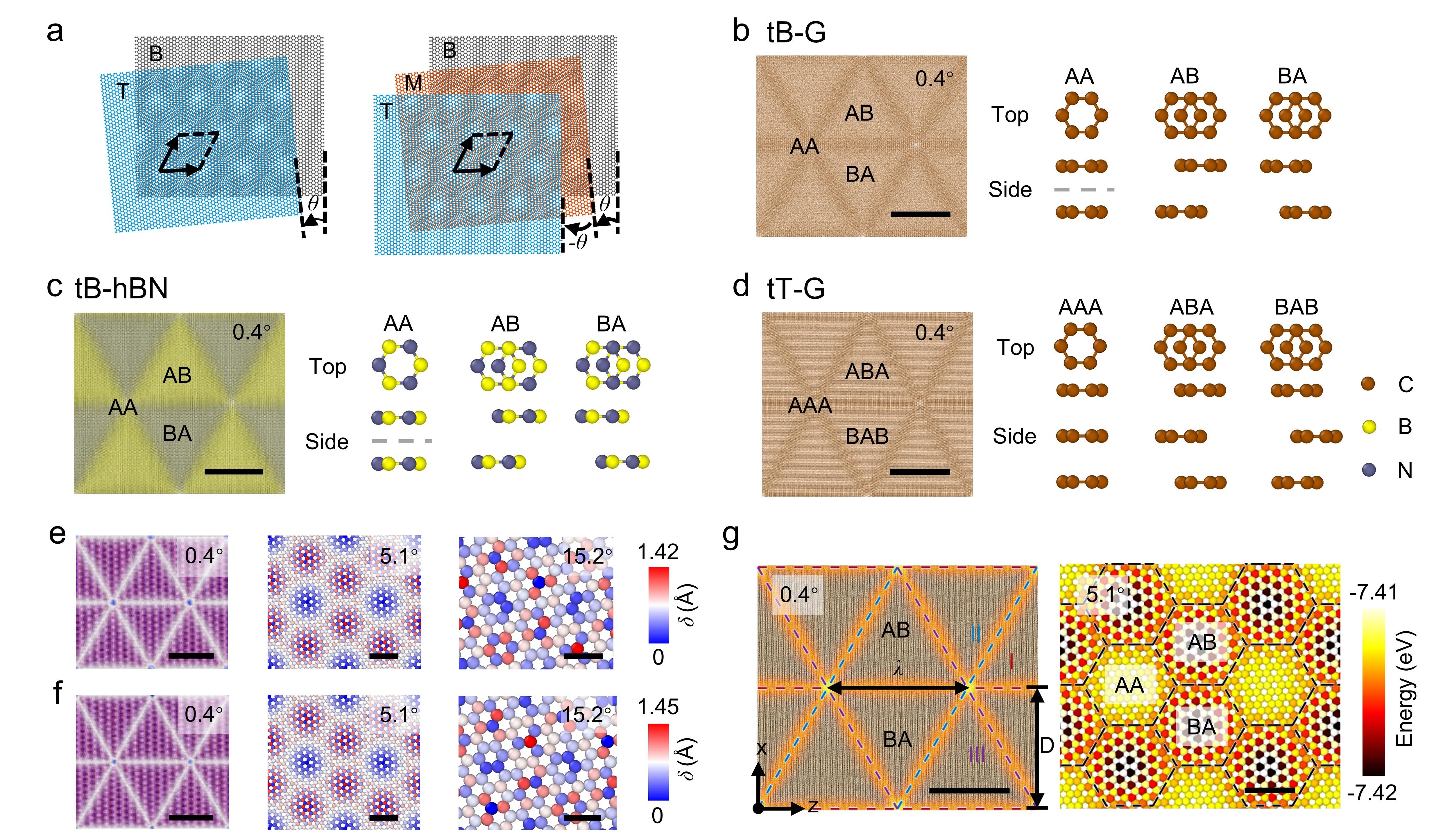 图1.扭转双层和多层体系的原子结构与能量分布