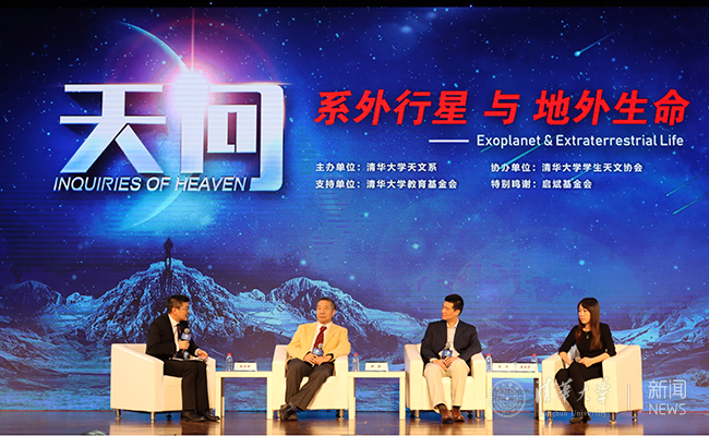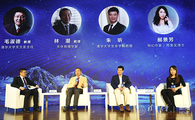 清华新闻网11月18日电(学生记者 何思萌 摄影 霍元东 张佳伟 皇甫硕龙)11月15日晚,由清华大学天文系主办的首期“天问”论坛在清华大学大礼堂举行。天体物理学家林潮,清华大学天文系主任毛淑德,生命学院教授朱听,“雨果奖”获得者、科幻作家郝景芳做客论坛,就“系外行星与地外生命”主题展开讨论。