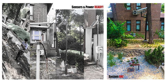 该研究以清华大学胜因院为研究场地,利用无线传感网络(WSN)在线监测技术,通过系统设计组织多种传感器收集分钟级的降雨、树冠截留、土壤持水量、下渗、积水、溢流等雨洪管理数据。研究依据11场降雨数据,定量评估了场地树木冠层及终端雨水花园所发挥的径流削减作用,并分析指标相关性,可视化复杂的土壤水文过程。本研究提供的监测指标、系统及分析方法在景观项目雨洪管理监测中具有较强的推广性,也初步证明了雨洪管理研究中实地监测分析的准确性远高于模型模拟与水文计算,并且高精度监测数据可有效支撑景观项目雨洪管理过程还原及绩效评估。