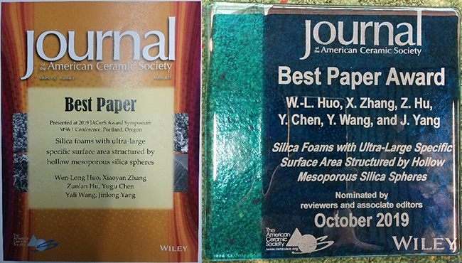 清华大学材料学院杨金龙教授团队荣获美国陶瓷学会期刊2018年度最佳论文奖