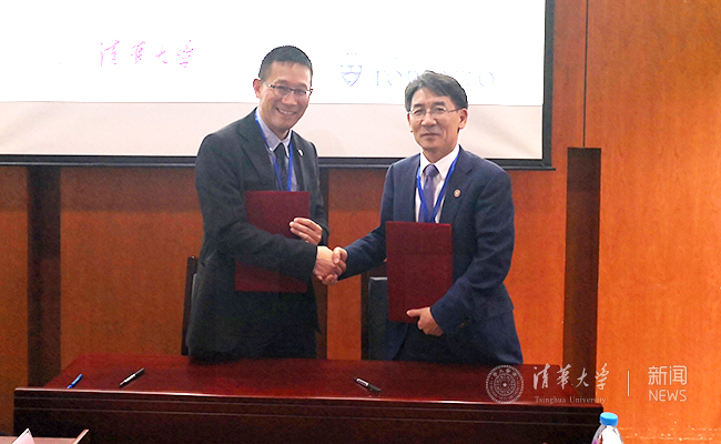 30日上午,在联合研讨会启动仪式上薛其坤与克里斯托佛·耶普分别代表清华大学和多伦多大学签署了“清华大学-多伦多大学战略科研合作协议”。在该协议的支持下,两校将于2019年启动联合科研种子基金,支持双方教师及学生在前沿学科领域的科研交流及合作。