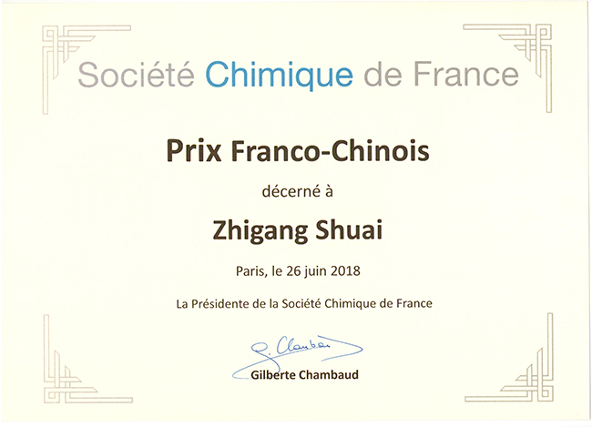 化学系帅志刚教授荣获2018年度法国化学会“法-中奖”