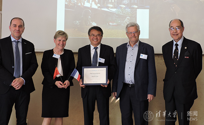 法国化学会主席Marc Taillefer教授向帅志刚颁发奖状,法国化学会前主席Gilberte Chambaud教授主持报告环节。“中-法奖”获得者Pierre Dixneuf教授、Michel Che教授等60多人出席了全天的颁奖仪式和8场获奖报告。
