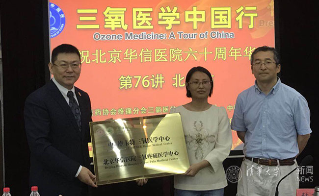 双方共同为清华大学第一附属医院三氧疼痛医学中心授牌。