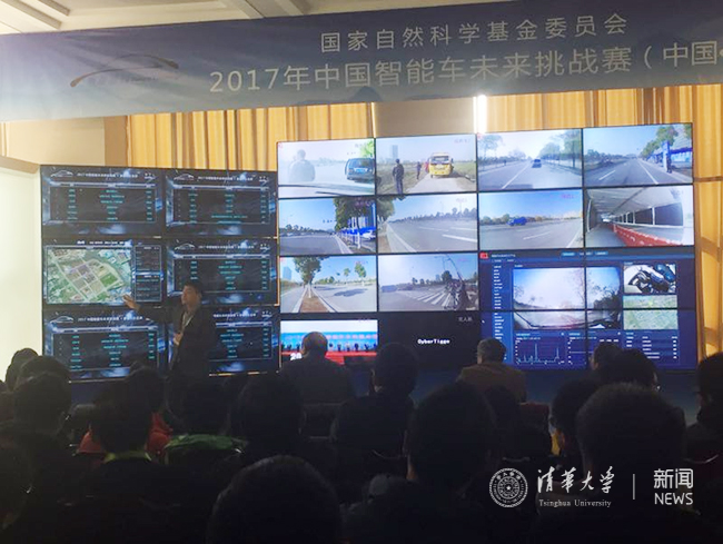 图3 基金委专家组和各参赛队观看2017年中国智能汽车未来挑战赛的实时监控和评分