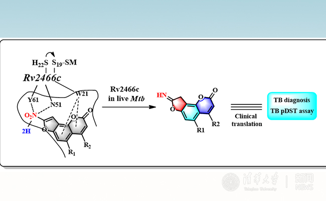 清华新闻网4月2日电 3月27日,清华大学药学院刘刚教授课题组及其合作者在《ACS 传染病》杂志上在线发表了题为“基于新型硝基还原酶Rv2466c的结核分枝杆菌诊断和药敏实验的荧光探针” (A Nitrooxidoreductase Rv2466c-dependent Fluorescent Probe for Rapid Mycobacterium Tuberculosis Diagnosis and Drug Susceptibility Testing) 的研究论文,报道了NFCs作为小分子荧光探针用于结核病诊疗的新发现。这是该课题组通过合作研究于2014年在《医药化学期刊》(Journal of Medicinal Chemistry)期刊上发表关于“NFCs可以选择性地高活性抑制复制型以及非复制型结核分枝杆菌”(doi: 10.1021/jm4019228.)以及2018年初在《ACS 传染病》杂志上发表关于“Rv2466c是结核分枝杆菌内Mycothiol(MSH)依赖的硝基还原酶”(doi: 10.1021/acsinfecdis.7b00111)的研究结果后,在结核病诊疗领域的又一研究进展。