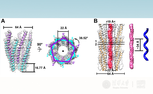 清华新闻网3月4日电 清华大学医学院向烨研究组与以色列特拉维夫大学Amir Goldbourt组合作于2月28日在《美国科学院院报》(Proceedings of the National Academy of Sciences of the United States of America, PNAS)在线发表题为“丝状噬菌体IKe冷冻电镜结构”( The Cryo-electron microscopy structure of the filamentous bacteriophage IKe)的研究论文,揭示丝状噬菌体病毒IKe高分辨结构。论文采用冷冻电镜三维重构方法解析得到高分辨丝状噬菌体IKe表面螺旋衣壳结构,同时也对丝状噬菌体内部DNA形态结构有了新的认识。