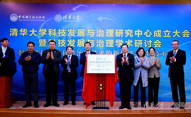 成立大会上,尤政宣读了清华大学校务委员会关于成立清华大学科技发展与治理研究中心的决定。随后,怀进鹏、邱勇分别为清华大学公管学院院长江小涓颁发中心主任聘书,为周琪院士颁发中心学术委员会联席主任聘书。会上,怀进鹏、邱勇、徐南平、陈左宁、尤政、江小涓、国家自然科学基金委员会原副主任何鸣鸿、周琪共同为中心揭牌。