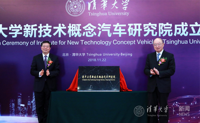 仪式上,石林、尤政代表双方签署合作协议。陈元、邱勇为清华大学新技术概念汽车研究院成立揭牌。