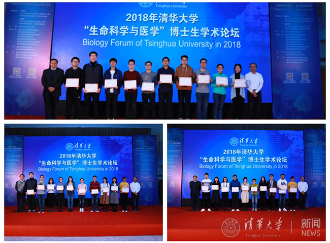 在颁奖环节中,共有10名同学获得了2018年清华大学“生命科学与医学”博士生学术论坛最佳报告人,共20名同学获得优秀墙报奖。