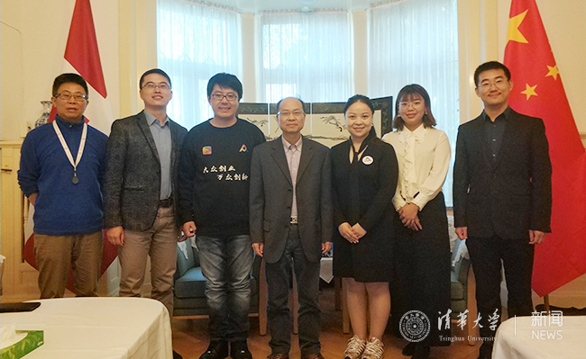 本次比赛也是2018年海外“大众创业、万众创新”活动周哥本哈根站的行程之一,清华大学代表团队的成员在参赛期间与其他中国赴丹麦团队进行了友好的交流,并得到了中国驻丹麦使馆彭斯震参赞的接见。