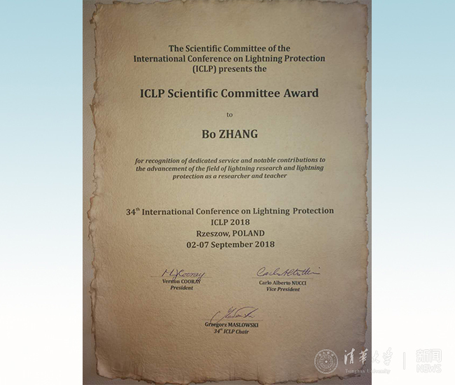清华电机系张波副教授荣获雷电防护国际会议科学委员会奖