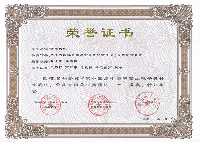清华大学代表队获第十三届中国研究生电子设计竞赛全国一等奖