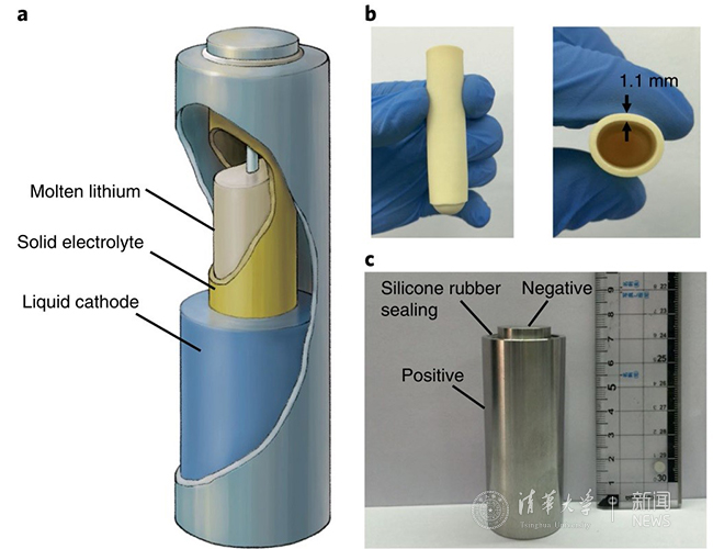 清华新闻网7月9日电 7月2日,清华大学材料学院伍晖副教授课题组与斯坦福大学合作,在《自然能源》(Nature Energy)上发表了题为《一种用于电网储能的中温石榴石固态电解质基熔融锂电池》(An intermediate temperature garnet-type solid electrolyte-based molten lithium battery for grid energy storage)的研究论文。该论文提出了一种面向大规模储能应用的全电池系统,设计并验证了以熔融锂金属为负极,锡铅合金和铋铅合金为正极, Li6.4La3Zr1.4Ta0.6O12(LLZTO)陶瓷管为电解质的液态金属电极(LME)电池。通过将固态电解质引入LME电池,有效降低了LME电池的运行温度,显著提高了电池的库伦效率和循环寿命。