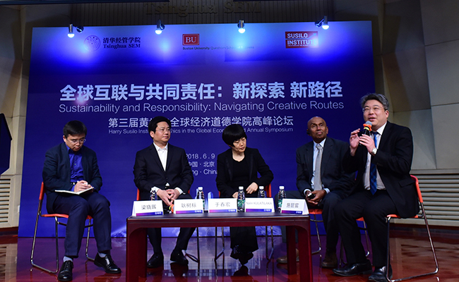 清华新闻网6月15日电 6月9日至10日,由清华大学经济管理学院、波士顿大学奎斯特罗姆商学院(Boston University Questrom School of Business)与黄世伟全球经济道德学院(Harry Susilo Institute for Ethics in the Global Economy)共同承办的第三届黄世伟全球经济道德高峰论坛在清华大学经管学院举行。本届论坛主题为“全球互联与共同责任:新探索,新路径”(Sustainability and Responsibility: Navigating Creative Routes),来自世界各地的200余位企业机构管理者、高校学者共同探讨在高度联接的世界中企业与企业家担负的责任,以及如何应对未来挑战,共建可持续发展的美好明天。