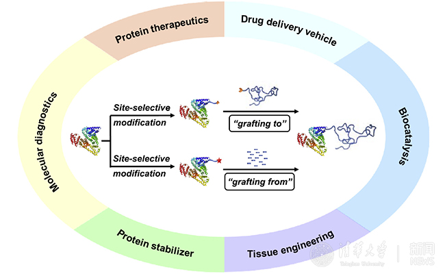 清华新闻网5月9日电 4月26日,清华大学医学院生物医学工程系高卫平课题组受邀在生物材料领域国际知名期刊《生物材料》(Biomaterials)在线发表了题为《利用高分子对蛋白质进行位点选择性修饰及其在生物医学领域的先进应用》 (Site-selective protein modification with polymers for advanced biomedical applications)的综述论文。
