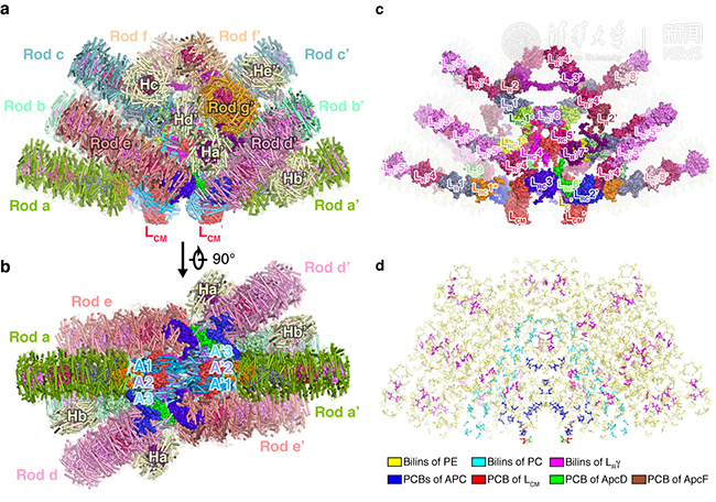 清华新闻网10月24日电 10月19日,清华大学生命科学学院隋森芳教授研究组在《自然》(Nature)期刊上在线发表题为《海洋红藻藻胆体的结构》(Structure of phycobilisome from the red alga Griffithsia pacifica)的研究论文,首次报道世界上第一个完整藻胆体的近原子分辨率的冷冻电镜三维结构,为揭示藻胆体的组装机制和光能传递途径奠定了重要基础。