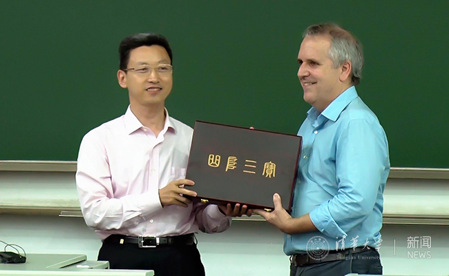 座谈结束后,王建民代表清华大学软件学院向乔丹院士赠送了纪念品,并对他为2017级新同学“传道受业解惑”,为新同学翻开大学课堂的新篇章表示诚挚谢意。乔丹院士对清华大学此次邀请他来短期授课并精心安排此次新生座谈表示了感谢,并表示在未来的几年中经常访问清华大学,与清华大学的师生共同合作,致力于推动数据科学的进展。