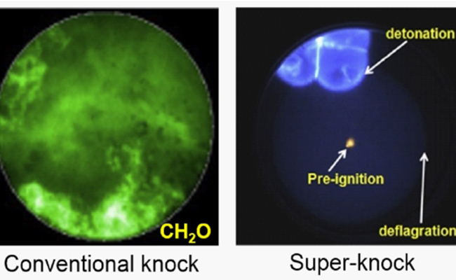 传统爆震和超级爆震对发动机的典型破坏形式。