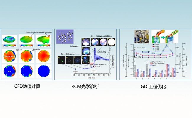 王志及其所在的“燃烧与排放课题组”一直致力于内燃机高效能量转换和清洁燃料燃烧的研究,他本人先后主持了国家自然科学基金青年面上重点项目、973、863课题,在内燃机爆震燃烧机理、爆震波模态转换和缸内直喷汽油机(GDI)爆震燃烧抑制和利用的探索方面开展了大量研究,并取得了一系列重要突破。通过与共建单位清华大学燃烧能源中心在基础燃烧方面进行合作,王志课题组提出了“早燃是超级爆震发生的必要非充分条件”的论点,发明了用快速压缩机(RCM)研究发动机超级爆震的方法,首次发现了超级爆震中存在爆轰(Detonation)现象,并发展了爆震燃烧光学诊断方法,建立了压力波和化学反应耦合的震荡燃烧传热模型,提出了激波反射诱导爆轰的机制,揭示了近壁起爆机理,进而提出了高温高压条件下爆震燃烧控制方法。