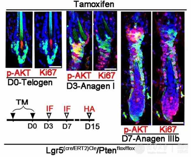 清华新闻网4月25日电 日前,清华-伯克利深圳学院(TBSI)精准医疗与健康研究中心、清华大学深圳研究生院生命与健康学部吴耀炯教授在《自然·通讯》(Nature Communications)发表题为“巨噬细胞通过AKT/β-catenin信号通路激活毛囊干细胞促进再生”(Macrophages induce AKT/β-catenin-dependent Lgr5+ stem cell activation and hair follicle regeneration through TNF)的研究论文。该论文通过分子生物学、基因工程学和生物信息学方法,揭示了巨噬细胞-TNF诱导的Lgr5+毛囊干细胞Akt /β-catenin(β链蛋白)信号在皮肤损伤后毛囊再生中的关键作用。