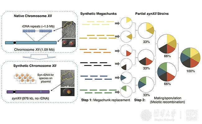 戴俊彪研究组基于原始碱基序列设计出新的碱基序列,并通过自主开发的分层组装和后续改造方案最终获得可在酿酒酵母体内正常发挥功能的合成十二号染色体(synXII),并对十二号染色体上编码核糖体RNA的DNA序列(rDNA)开展了一系列工程化改造。